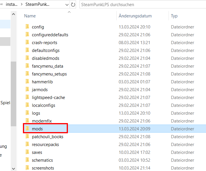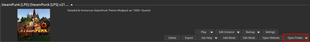 Öffne via AT-Launcher den Modpack Ordner im Reiter Instanzen